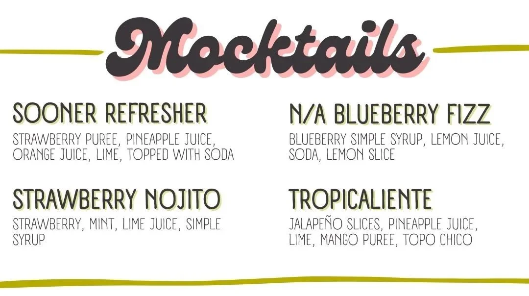Menu featuring cocktails and winter specials, including blueberry fizz, watermelon club special, mojito, peach ice pick, espresso martini, cable car, limoncello spritz, Moscow mule, sazerac, reposado firing squad, winter mule, spiced old fashioned, bourbon smash, and sugar cookie martini.